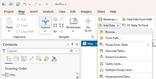 Alternatively, right-click the map name in the Contents panel and select Add Data.